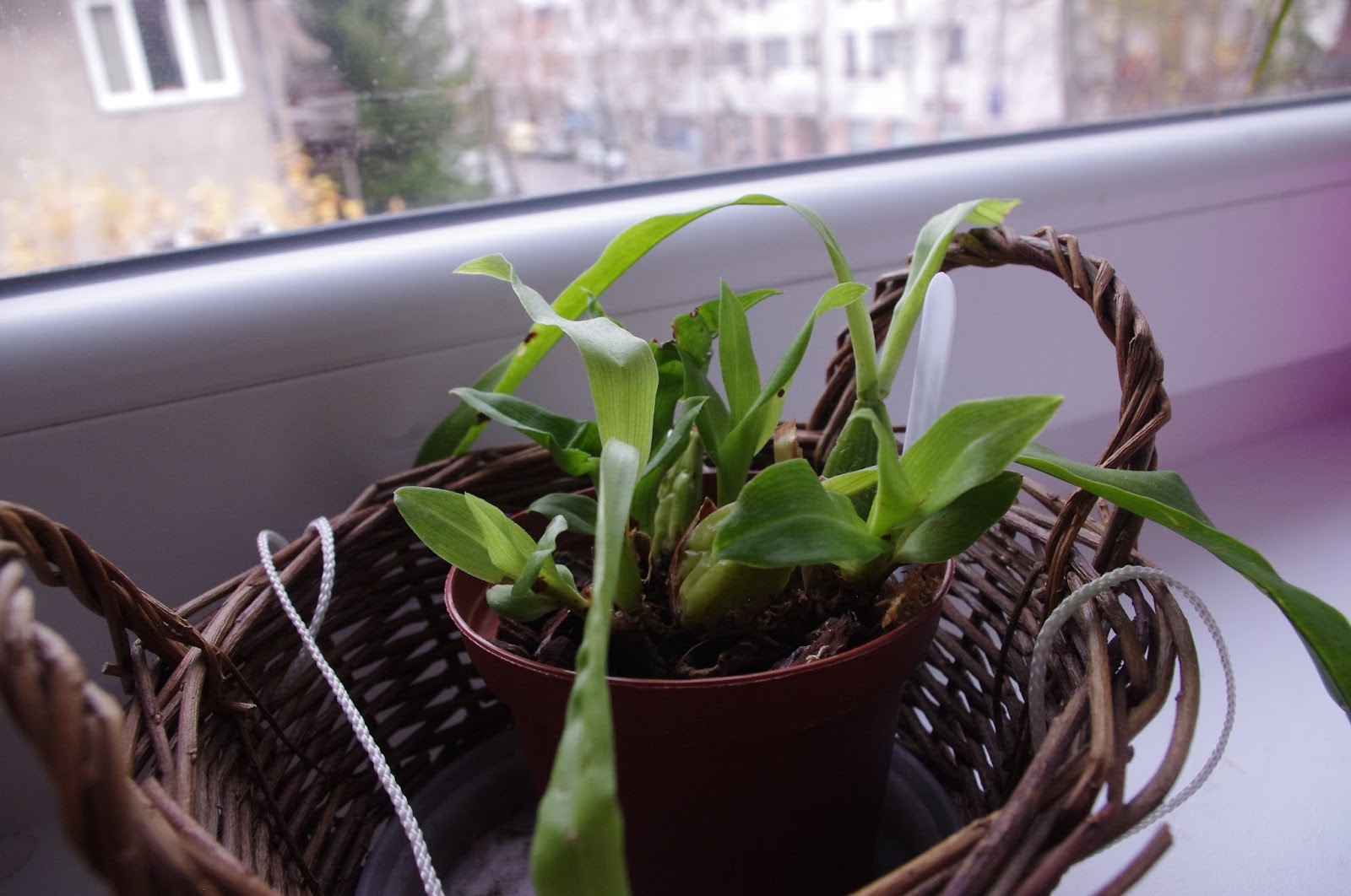 Sünnipäevaks saadud tsümbiidium on nii tublisti kasvama hakanud jahedal aknal, et lausa lust on vaadata. Praeguseks olen ma aru saanud, et kaks on kohe kindlasti uued tütartaimed, ühe puhul on mul veel kahtlus, samas ma pigem arvan, et ka tema on tütar mitte õis.